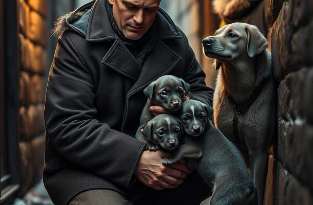Тогда изнутри донёсся слабый писк, как крик новорождённого птенца. Я замер, кровь отлила от лица. С резким движением я разрезал мешок, и внутри, на мокром дне, лежали два крошечных щенка. Они были слепыми, шерсть их влажна и грязна, но дыхание их было живым. Я осторожно поднял одного, чутьчуть поместивший на ладонь, а потом и второго, прижав их к груди, пытаясь согреть своим телом. Их крошечные сердца колотились в такт моему, будто они слышали мой стон.