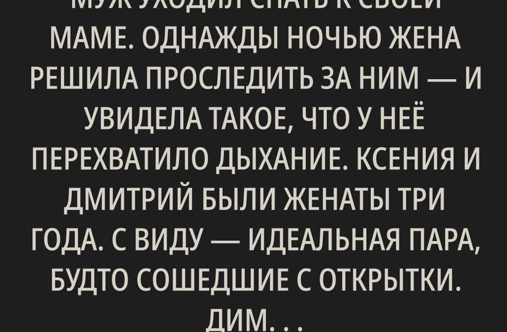 Три года брака и каждую ночь муж уходил спать к своей маме. Однажды ночью жена решила проследить за ним и увидела такое, что у неё перехватило дыхание.