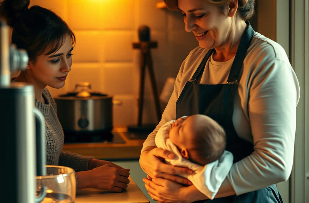Из больницы Вику с дочкой встретили муж, родители и тёща. Дома, конечно, сели за стол, но недолго через час гости свалили, оставив молодых родителей и новорождённого одних.