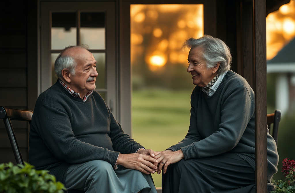Глупая ты, старая Зачем мне другая жизнь? Я всю жизнь тебя любил! Села твоё до сих пор помню: случайно зашёл, правда, но как увидел тебя сразу сердце дрогнуло, не знал, как подойти. Решил помочь с хозяйством: авось не выгонишь, присмотришься. А тут эта балка по голове всё потемнело, ничего не помню. Очнулся и ты рядом, врач колдует, ты хлопочешь Я и попросил врача малость соврать про память, чтоб остаться подольше рядом, тебе в доме прижиться. А ты прямо мне заявила муж, и я обрадовался: не надо придумывать, всё само сложилось.