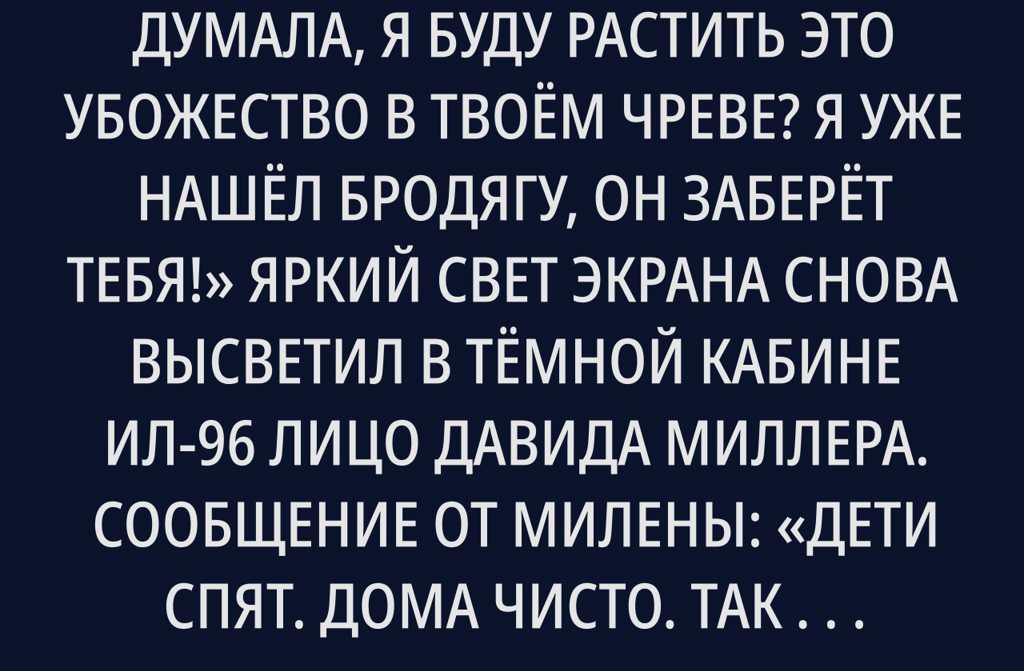 Яркий свет экрана снова высветил в тёмной кабине Ил-96 лицо Давида Миллера.