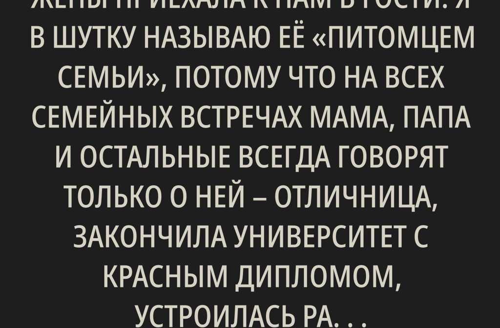 Этим летом любимая сестра жены приехала к нам в гости. Я в шутку называю её «питомцем семьи», потому что на всех семейных встречах мама, папа и остальные всегда говорят только о ней отличница, закончила университет с красным дипломом, устроилась работать по специальности, ну не идеальная ли дочка?
