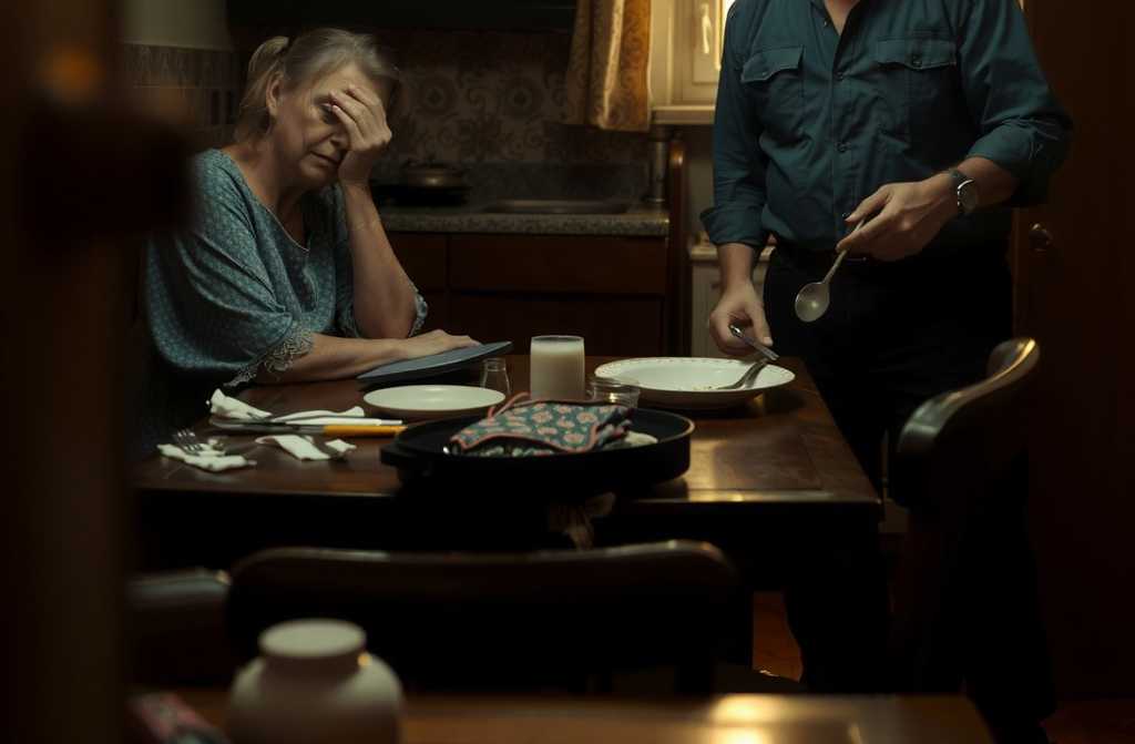Муж перестает есть, откладывает ложку.