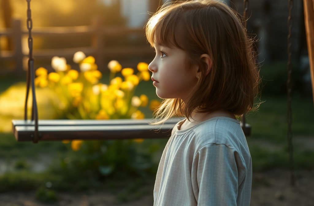 Однажды Маша сидела на веранде, наблюдая, как дядя Игорь всё умеет. Затем пошла в соседний дом к подружке, а вечером, вернувшись, открыла калитку и застыла посреди двора выросли качели! Они слегка раскачивались под лёгким ветерком, маня к себе.