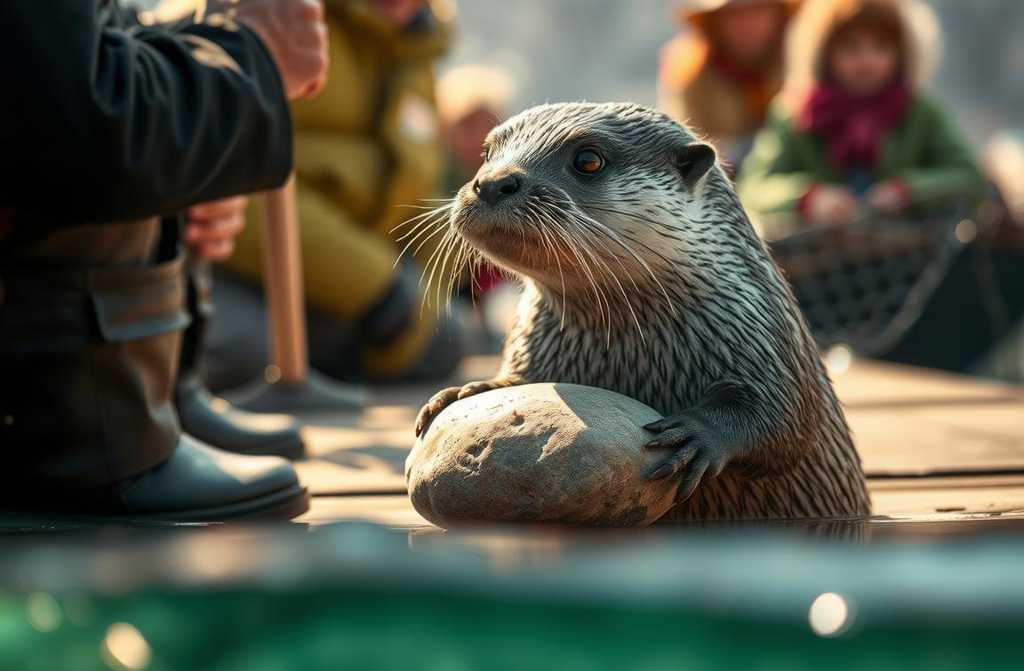 Сначала они услышали лишь всплеск что-то мокрое и быстрое вынырнуло из воды и запрыгало по доскам. Все подняли головы. На пирсе стояла выдра. Самец. Мокрый, дрожащий, с паникой и мольбой в глазах. Он не убежал, не спрятался, как дикие звери. Нет. Он метался между людьми, трогал лапами их ноги, скулил тонким, почти детским голосом, а потом снова бросался к краю причала.