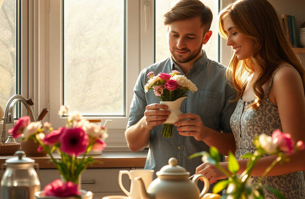 Она вернулась в чистую квартиру, к мужу, который сам накрыл на стол, и встретил её с цветами.