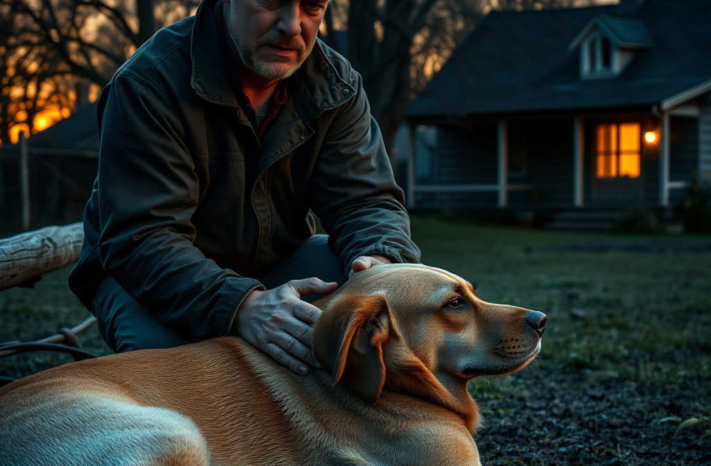 Вечером Вадим вернулся, но не нашёл собаку у ворот. В доме царил беспорядок. У скамейки он обнаружил Марса, кулаки его сжались. Быстро отвязав пса, он понёс его в медпункт.