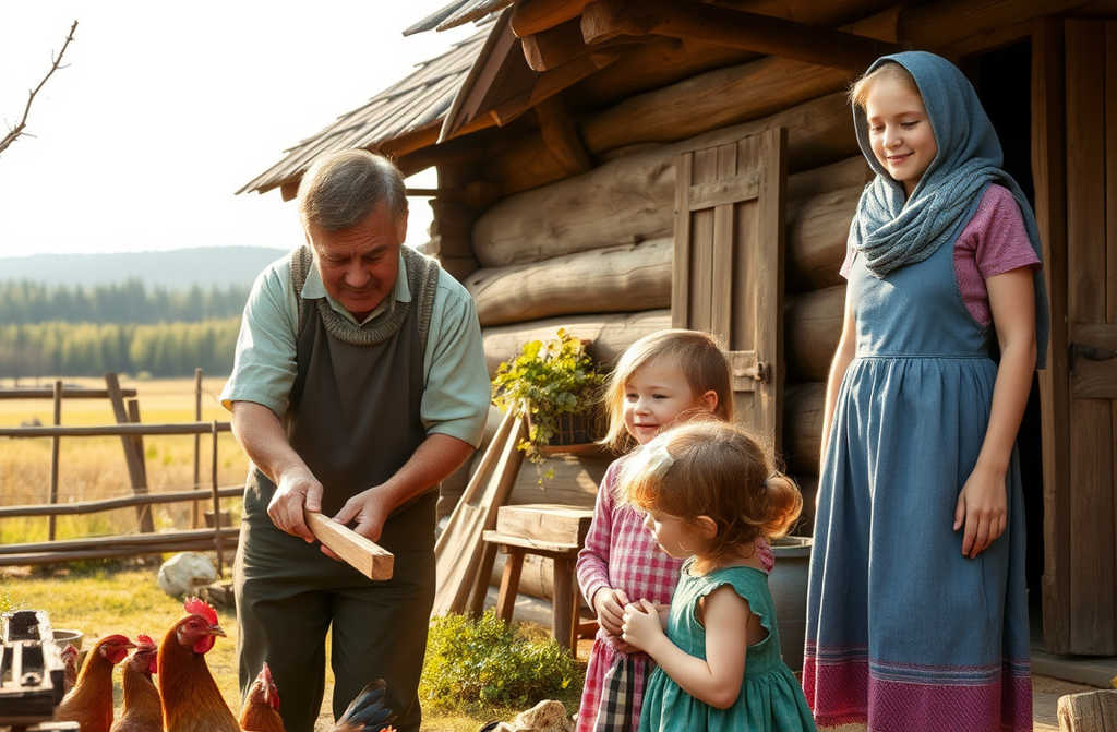 Сергей появился в их избе осенью. Молчаливый, с крепкими руками, знакомыми с лопатой и молотком, и спокойными глазами, которые смотрели на детей не свысока, а с какой-то твёрдой уверенностью, что всё наладится. И хоть Дашеньке было уже девять, а Ваньке двенадцать, отца они почти не помнили: его не стало, когда дети только в первый класс пошли.