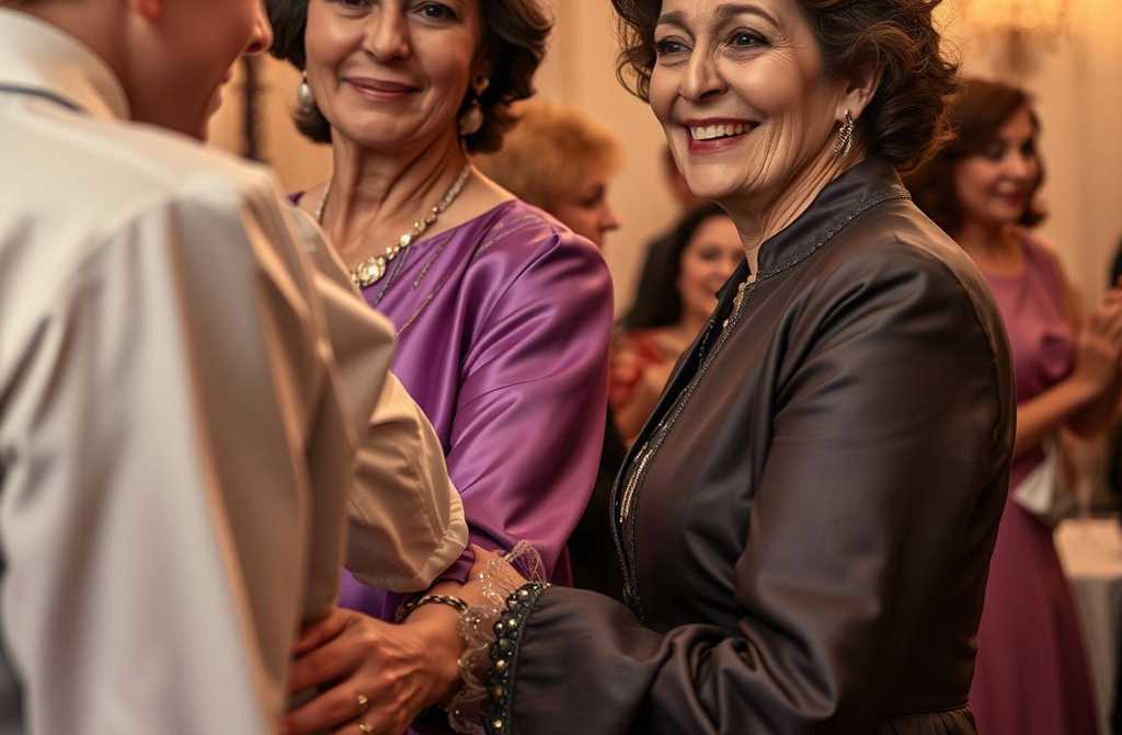 Она стояла рядом со своим мужем, Денисом, держа бокал, лицо её сияло.