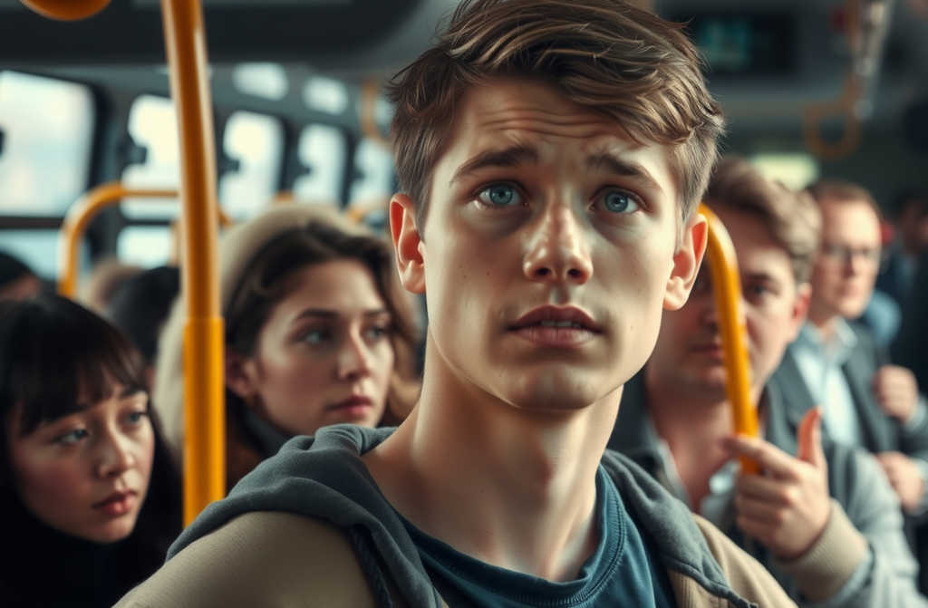 В салоне будто кто-то собаку за хвост потянул все притихли в напряжении. Я тихо встал, облокотившись на поручень.
