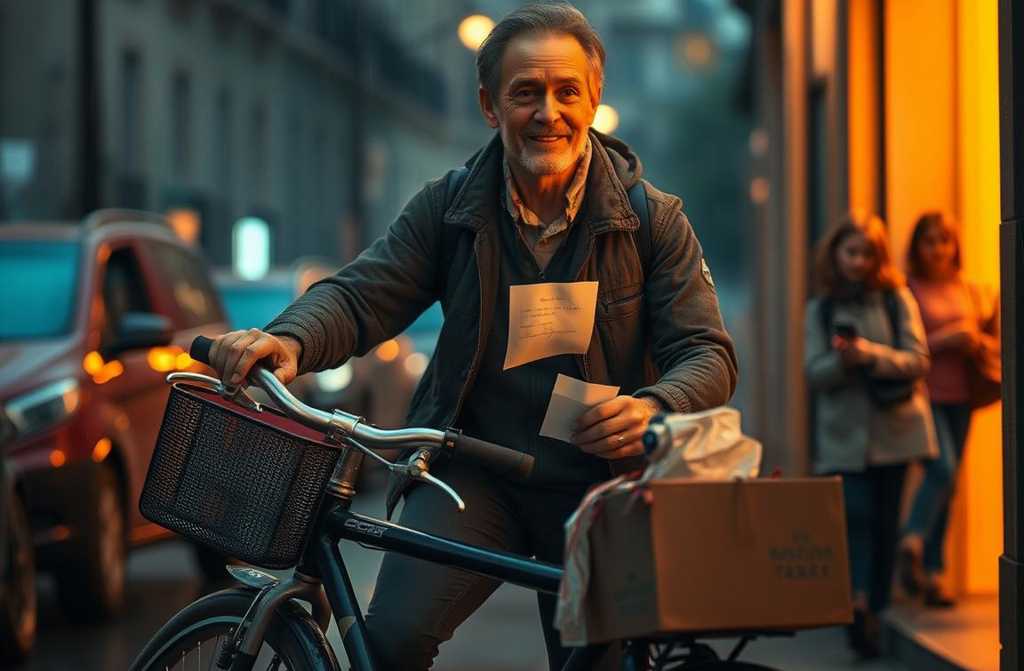Иногда в пакете или коробке оказывалась записка. Короткие, скромные фразы, которые зажигали свет в чьей-то рутине. «Сегодня ты тоже важен, даже если никто не скажет». «Иногда просто идти вперёд уже победа». «Твоя усталость не делает тебя слабым. Она делает тебя человеком». Каждая фраза находила забытый уголок души. Никто не знал, кто их писал. Никто не догадывался, что за ржавым велосипедом и рюкзаком скрывается сердце, напоминающее, что доброта ещё жива.