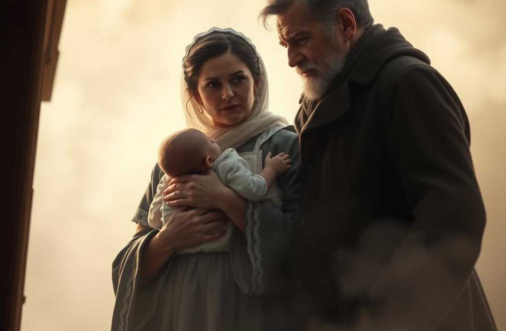 Позже, в больнице, Григорий подошёл к Аграфене, лежавшей на койке с перебинтованными руками. Она выглядела измождённой, но взгляд её смягчился, когда она увидела Мишу, мирно спящего в колыбели рядом.