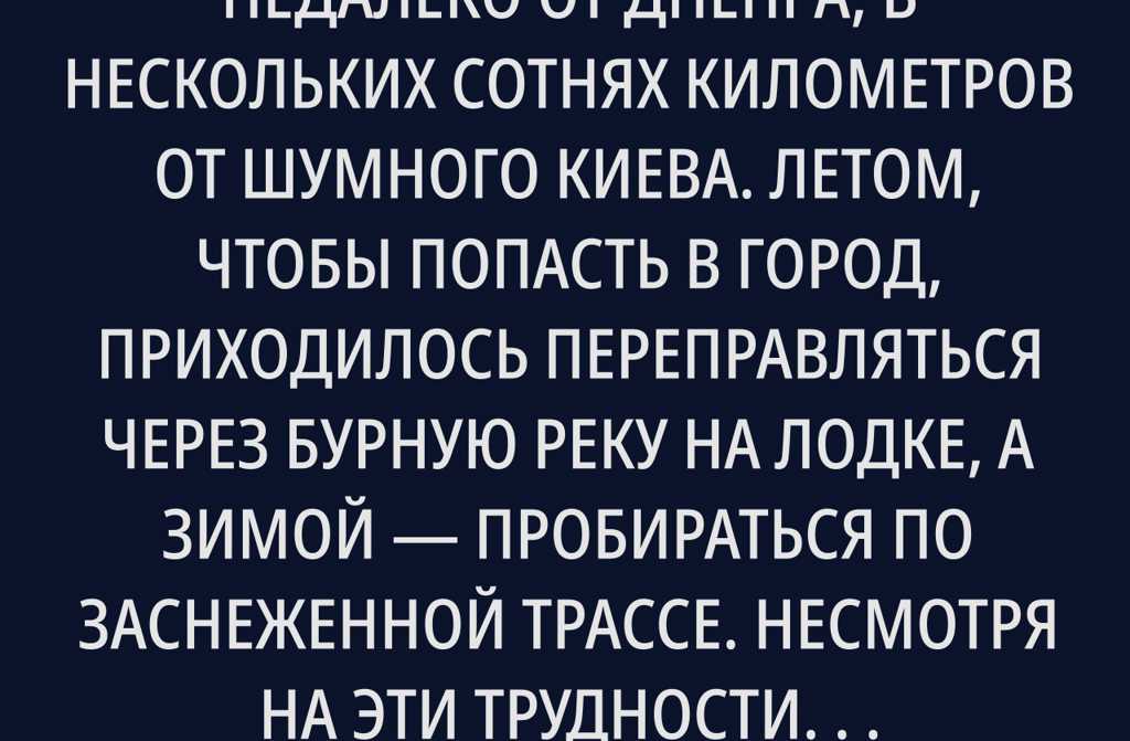 Марина выросла в деревне недалеко от Днепра, в нескольких сотнях километров от шумного Киева. Летом, чтобы попасть в город, приходилось переправляться через бурную реку на лодке, а зимой пробираться по заснеженной трассе.