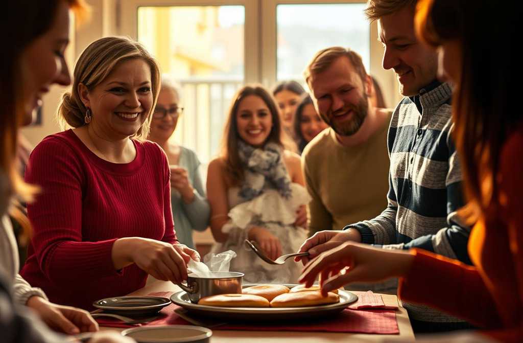 Роднульки! Завтрак накрыт! Оладушков напекла! Потом обниматься будете, а сейчас бегом, пока горячее!