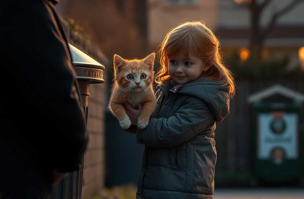 Батько зняв куртку, загорнув у неї кота і поніс додому. Дівчинка бігла поруч, повторюючи: