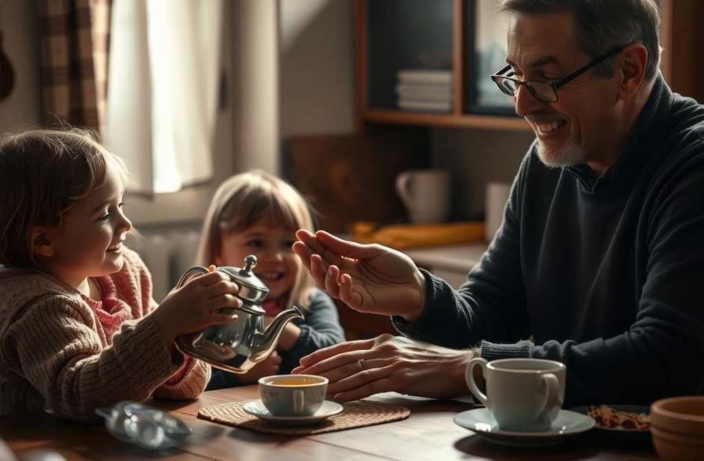 Разливала всем суп, наливала чай, каждому положила по две печеньки.