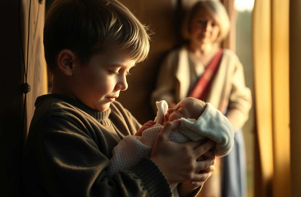 Так прошли годы. Виктор стал водителем, Тамара доит коров, а Коленька с Маней растут. Он каждый день бросается из школы, раскидывая руки и ловя свою крошку, пока остальные ребята из деревни зовут её «девчонкой».