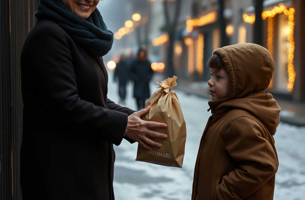 Вино, Стёпочка… — Тётя, но у нас нет денег… — тихо сказал мальчик, глядя на полные пакеты. После Нового года город стал как будто грустнее. Огни всё ещё висели на столбах, но уже никого не грели. Люди спешили, магазины пустели, а в домах оставалась лишняя еда и тяжёлая тишина. В просторном доме семьи Ивановых столы ломились от угощений: куличи, жаркое, салаты, апельсины — гораздо больше, чем нужно. Галина Ивановна медленно убирала посуду, смотрела на недоеденную еду — и сердце сжималось. Знала, что часть придётся выбросить, и эта мысль причиняла боль. Подойдя к окну по наитию, вдруг увидела его — Стёпочку. Стоял у ворот, тихий, в старенькой шапке и тонкой куртке. Не смотрел настойчиво в дом, будто ждал… но не решался постучать. Несколько дней назад она заметила его на улице: мальчик стоял у витрины, прилипнув к стеклу, смотрел на красиво разложенную еду. Не просил, не мешал, только смотрел — взгляд был голодный, но смирённый. Тогда Галина Ивановна всё поняла. Отложив посуду, открыла шкафы и набрала сумку хлеба, куличей, мяса, фруктов, сладостей, положила ещё одну полную сумку — всё, что осталось после праздников. Тихонько открыла дверь: — Стёпочка… иди сюда, милый. Мальчик вздрогнул, неуверенно подошёл. — Возьми, это для тебя и мамы, — ласково сказала она, протягивая пакеты. Стёпочка оцепенел: — Тётя… но у нас нет денег… — Не надо денег, просто кушайте, — ответила она. У мальчишки дрожали руки, когда он прижимал пакеты к груди — как будто держал что-то очень хрупкое и святое. — Спасибо… — прошептал он сквозь слёзы. Галина Ивановна смотрела ему вслед — он уходил ещё тише, чем пришёл, будто не хотел завершать этот миг. В тот вечер в маленьком доме мама плакала от благодарности. Мальчик впервые поел досыта. И семья поняла — они не одни. А в большом доме столы опустели, но сердца наполнились. Ведь настоящая щедрость — не то, что ты оставляешь себе, а то, что отдаёшь, когда никто не просит. И, может быть, Новый год начинается не с боя курантов, а с того момента, когда открываешь двери и говоришь: «Входи». 💬 Напиши в комментариях «ДОБРОТА» и поделись этой историей. Маленький жест способен изменить чью-то жизнь.