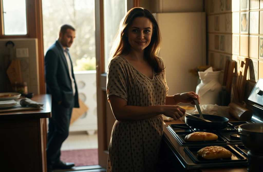 Марія смажила деруни, коли на кухню зайшов чоловік.