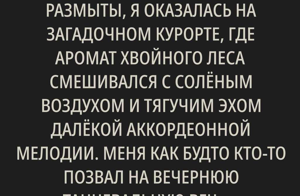 Во сне, в котором границы времени и пространства размыты, я оказалась на загадочном курорте, где аромат хвойного леса смешивался с солёным воздухом и тягучим эхом далёкой аккордеонной мелодии. Меня как будто кто-то позвал на вечернюю танцевальную вечеринку в старинном санатории под Одессой. Я зашла туда просто ради смены обстановки, не надеясь ни на что романтичное хотелось раствориться в живой музыке, дать телу легкомысленно закружиться, стряхнуть с себя будни, как усталую одежду.