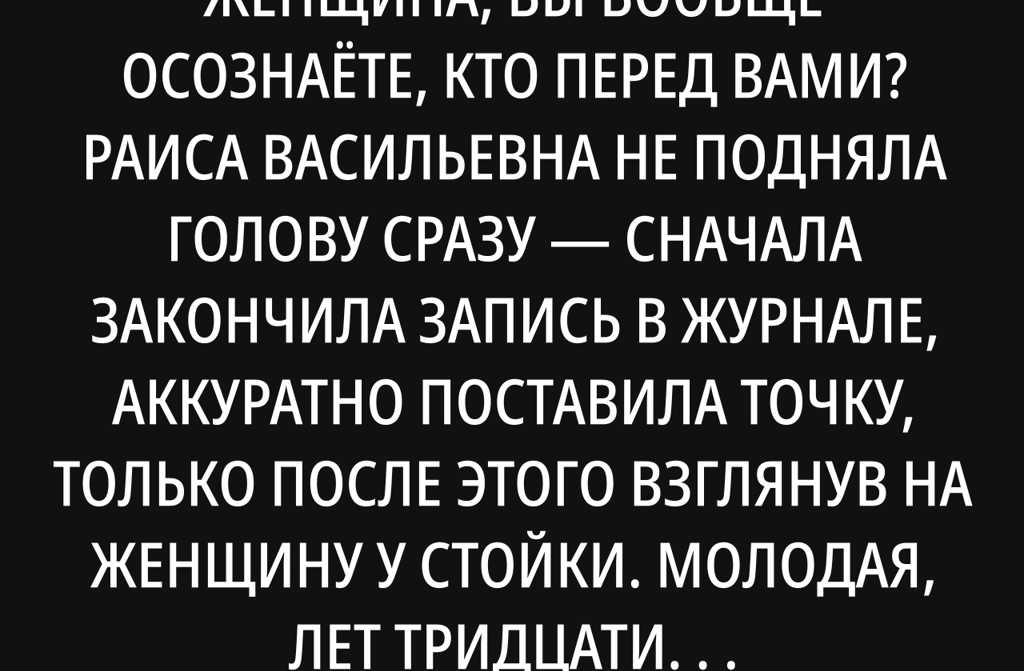 Раиса Васильевна не подняла голову сразу сначала закончила запись в журнале, аккуратно поставила точку, только после этого взглянув на женщину у стойки.
