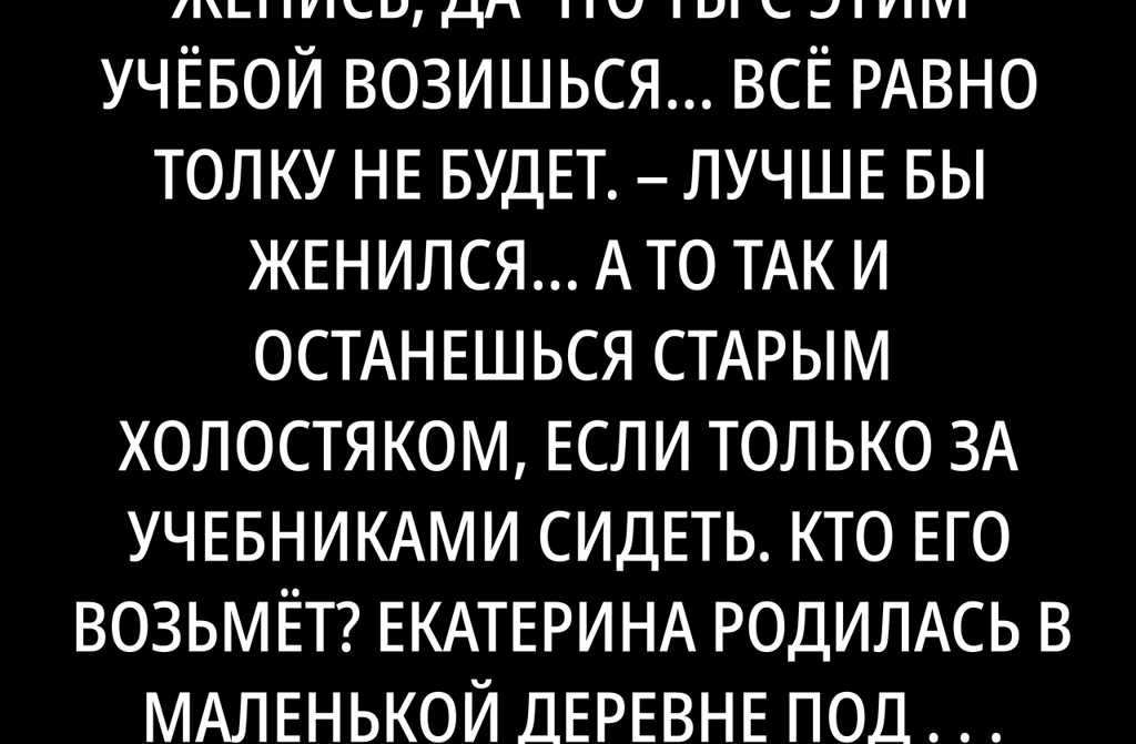 Все вокруг говорили мне женись, да что ты с этим учёбой возишься всё равно толку не будет.