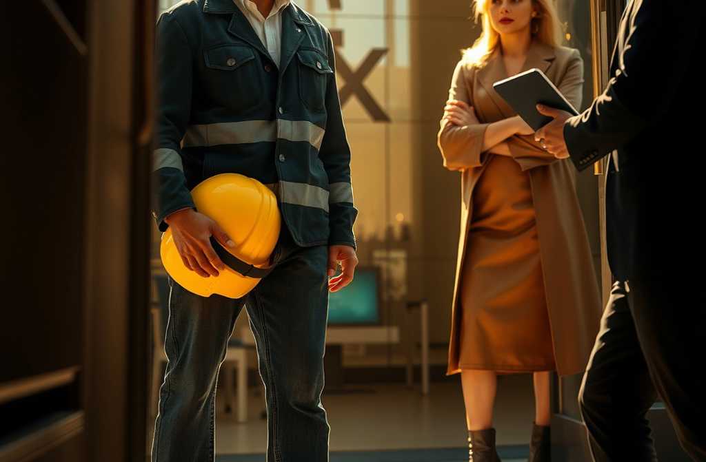 Яркое солнце отражалось в зеркальных стенах киевского бизнес-центра. У входа стояла элегантная дама её наряд явно стоил не одну тысячу гривен. Но на лице было отвращение. Перед ней мужчина в поношенной рабочей куртке, с пылью на ботинках, в руках жёлтая каска.