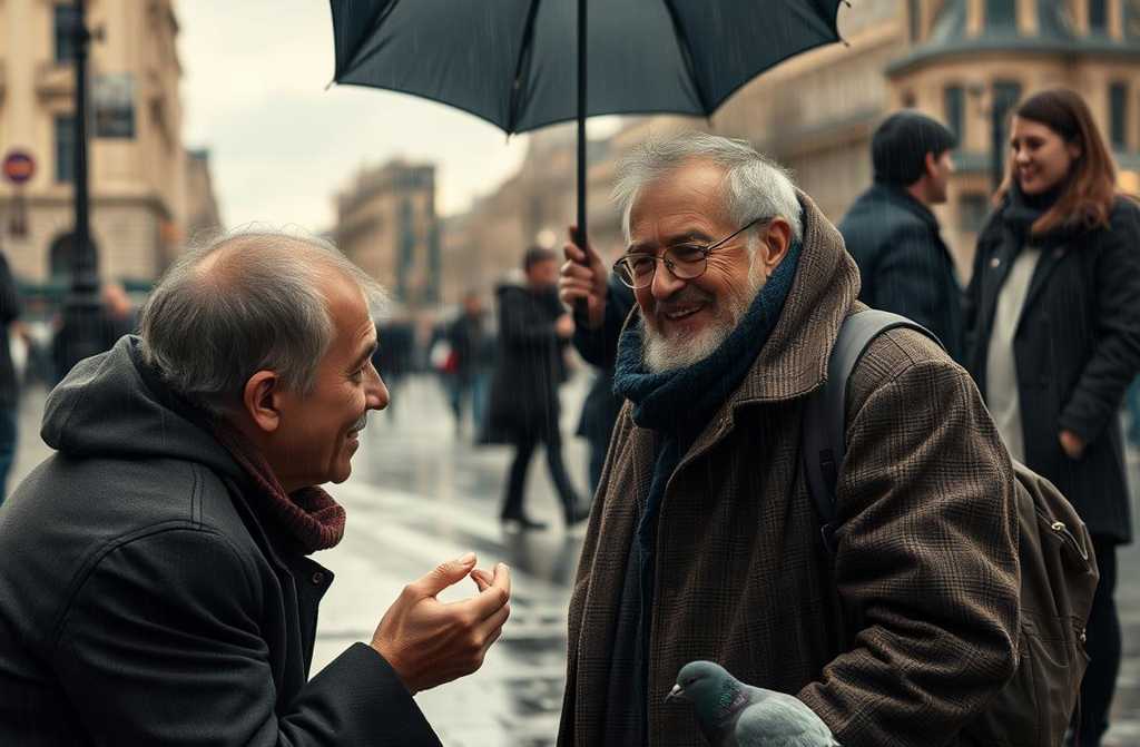 Она не обратила внимания пока не увидела сама. Бездомный, лет сорока, с тёплым взглядом сквозь слой грязи, крошил хлеб на парапет и шептал что-то голубям, будто старым приятелям. Артём стоял рядом, смотрел и в его глазах светилась тишина, которой Алиса не видела месяцами.