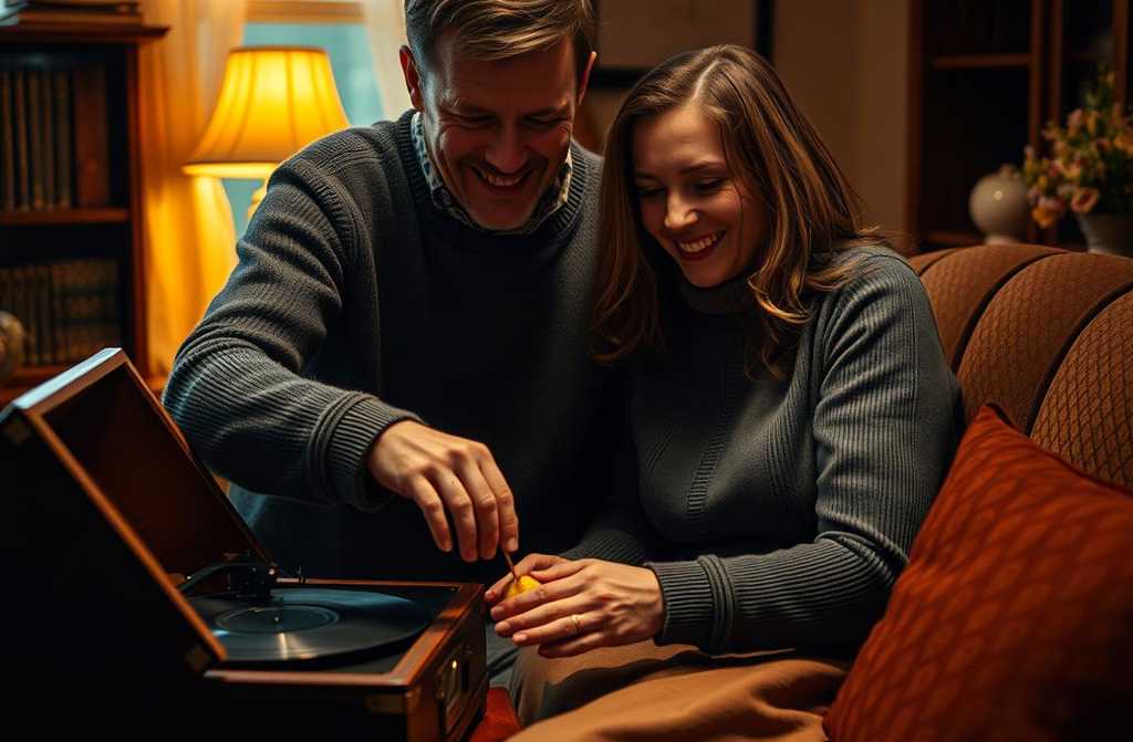 Она пожимает плечами. Он осторожно проводит пальцами по пластинке, не оставляя царапин, ставит её на проигрыватель, включает. В комнате звучит музыка.