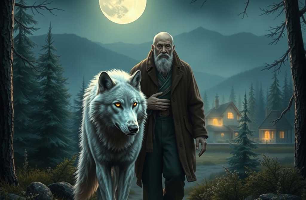 С трудом, почти без сил, старик ухватился за его шею. Волк поднялся и понёс его сквозь тёмный лес. Старик слышал, как хрустят под лапами ветки, видел мелькающие тени других зверей, но никто не смел подойти ближе.