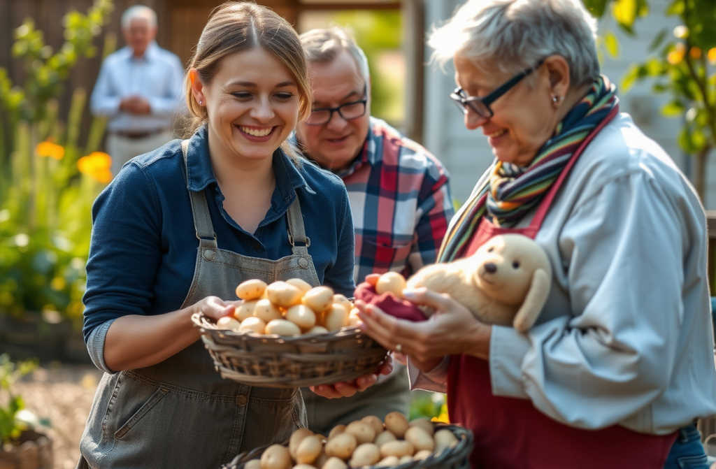 Когда мужики вскопали огород, пошли всей семьёй сажать картошку.