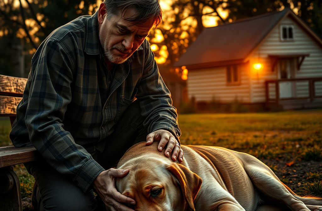 Вечером Вадим вернулся, но не нашёл собаку у калитки. В доме царил беспорядок. У скамейки он увидел Марса. Кулаки сами сжались. Быстро отвязав пса, он понёс его в ветлечебницу.