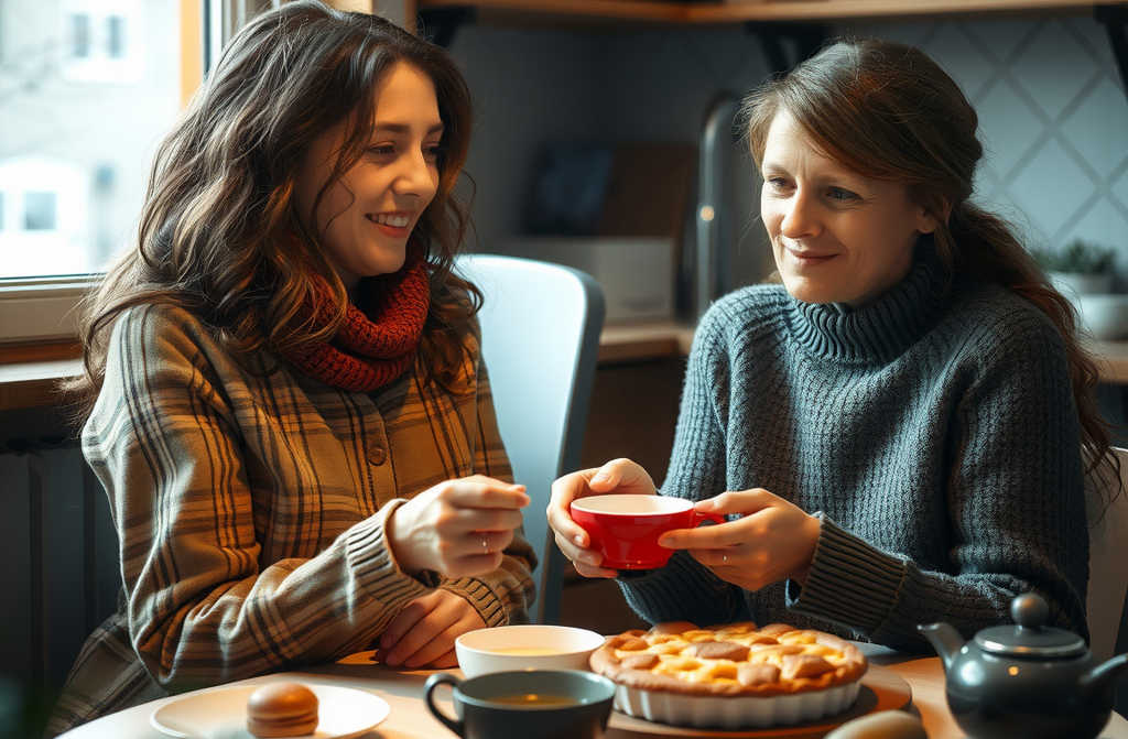 На следующий день Катя пришла с тёплым пирогом, с хорошим настроением и рассказами о работе. Они сидели на кухне стены Марина когда-то красила сама. Солнце в ноябре, едва тёплое, падало на стол.