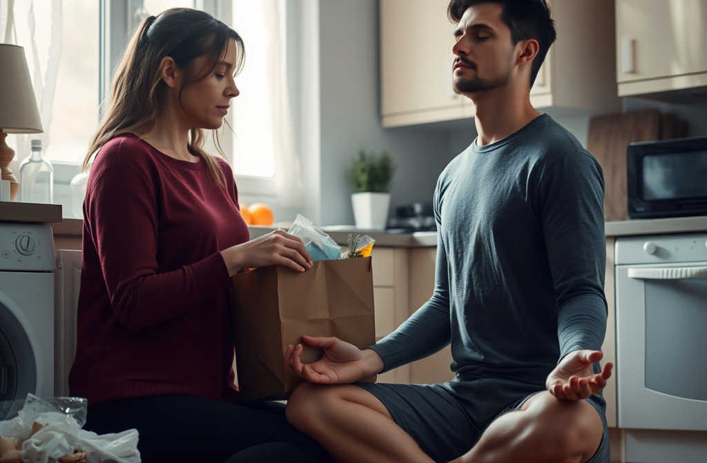 Особенно запомнился один вечер. Я вернулась с тяжелыми пакетами из магазина, поставила их на стол и попросила помочь. Он ответил, что он сейчас в глубокой медитации и не может прерывать свою энергию. Я промолчала. Пока сама разбирала продукты, подумала: у меня не партнер, а взрослый человек, который отказался отвечать за свою жизнь.