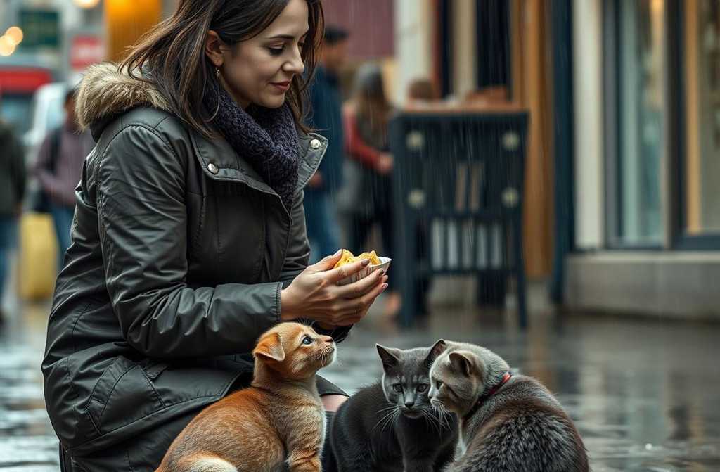 Кошка же лишь взглянула на женщину, мягко мурлыкнула и, не спеша, сначала коснулась её руки головой. Потом прикрыла малыша собой и продолжила вылизывать его, пока он, дрожа всем телом, ел кусочки угощения.