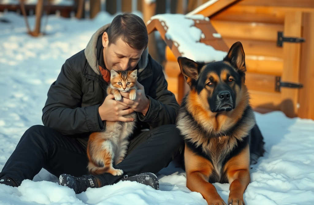 Андрей осторожно вытянул руки, взял пушистого кроху и прижал к себе. Тут же к нему метнулся Гриша: не лаял, не ворчал, а аккуратно ткнулся мордой в плечо, готовый если что помочь.