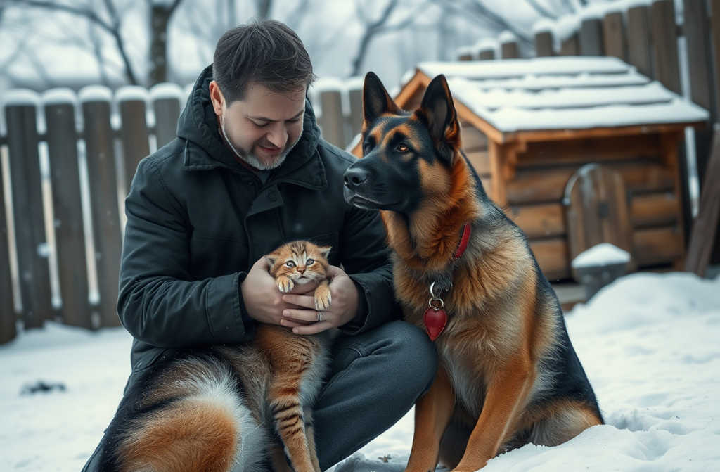 …Внутри, завернувшись в старый платок, прижался маленький котёнок грязный, промерзший до костей, едва дышащий. Глаза его еле открывались, тело трясло от холода. Барин где-то нашёл его и вместо того чтобы прогнать, приютил спал на снегу, чтобы не напугать малыша, а сам охранял вход так, будто в будке настоящее сокровище.