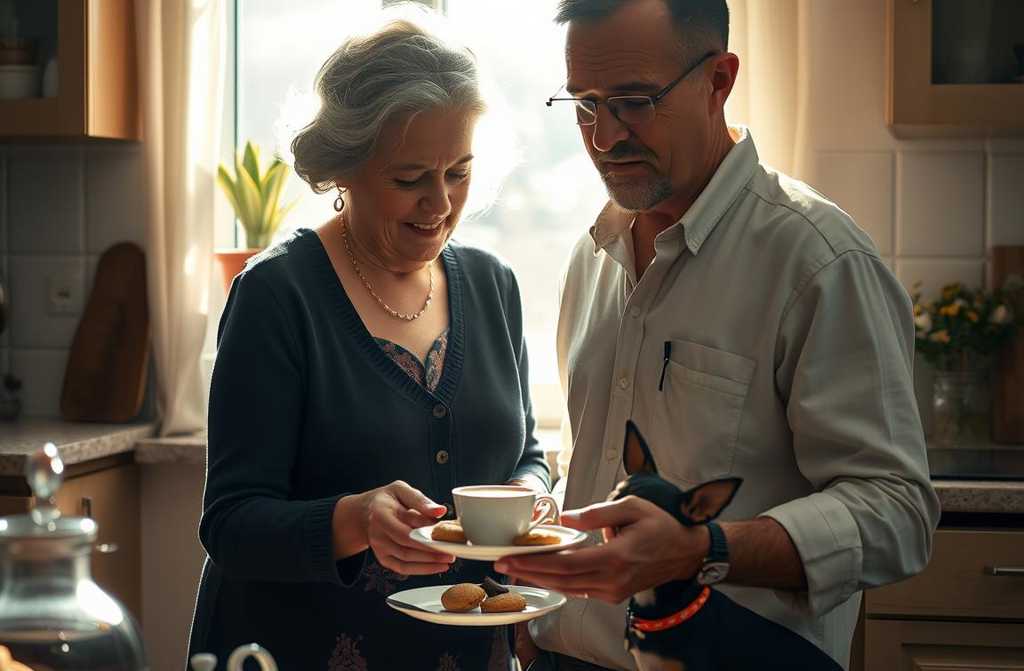 Давай чай, говорит она, доставая коробку детского печенья. Пёс обожает их, ведь только Валентина угощает его, а у него особая диета. Она жалеет Барса и покупает детское печенье специально для него.