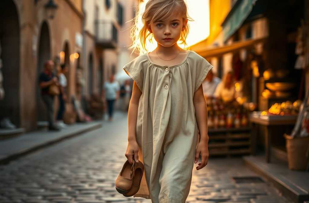 Однажды, когда солнце клонилось к закату над главной площадью, иностранка заметила девочку, бегущую между рыночными рядами, с ногами, покрытыми пылью и мелкими камешками. Женщина подошла ближе и спросила с улыбкой: